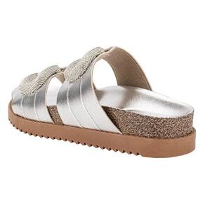Estilo Brilhante com Tiras Metalizadas e Strass: O acabamento metalizado e o detalhe em strass nas tiras grossas adicionam um toque sofisticado ao chinelo, tornando-o perfeito para elevar qualquer look casual.