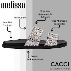 Seu acabamento brilhante adiciona um toque de elegância a qualquer visual. A marca Melissa é um símbolo de qualidade e autenticidade, garantindo que você está adquirindo um produto genuíno. A Melissa Lust Slide é uma escolha versátil que segue as tendências da moda, perfeita para diversas ocasiões.