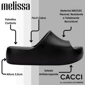 A marca Melissa é renomada por sua qualidade e design inovador, e esta plataforma slide não é exceção. Ela é uma escolha versátil para mulheres que desejam um calçado diferenciado para diversas ocasiões.