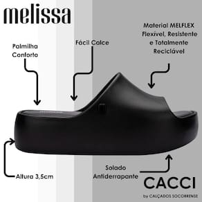 A marca Melissa é renomada por sua qualidade e design inovador, e esta plataforma slide não é exceção. Ela é uma escolha versátil para mulheres que desejam um calçado diferenciado para diversas ocasiões.