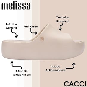 A marca Melissa é renomada por sua qualidade e design inovador, e esta plataforma slide não é exceção. Ela é uma escolha versátil para mulheres que desejam um calçado diferenciado para diversas ocasiões.