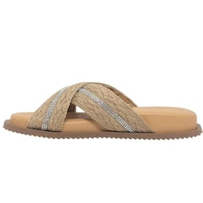 Sua tira feita de material artesanal em palha junto a uma faixa de strass incrivelmente exuberante que destaca a silhueta dos pés de forma elegante. Esse chienlo foi criado para proporcionar um encaixe perfeito e seguro em qualquer momento. São esses pequenos detalhes que fazem toda a diferença, transformando seu look em algo verdadeiramente especial.