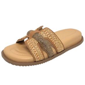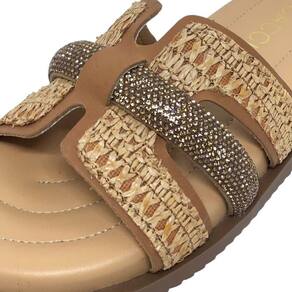 Sua tira feita de material artesanal em palha junto a uma faixa de strass incrivelmente exuberante que destaca a silhueta dos pés de forma elegante. Esse chienlo foi criado para proporcionar um encaixe perfeito e seguro em qualquer momento. São esses pequenos detalhes que fazem toda a diferença, transformando seu look em algo verdadeiramente especial.
