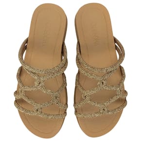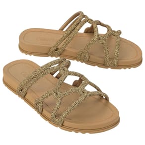 A nova rasteira Grendha Acolher com tiras entrelaçadas e fluídas recebe acabamentos refinados inspirado nos cristais tubulares. O efeito brilhoso intensifica a tendência glamourosa que conquistou a todos na estação. A sola anatômica com linhas delicadas harmoniza com a proposta do cabedal.