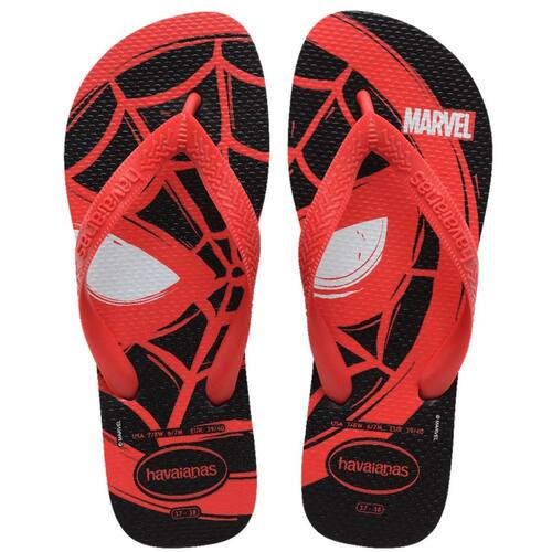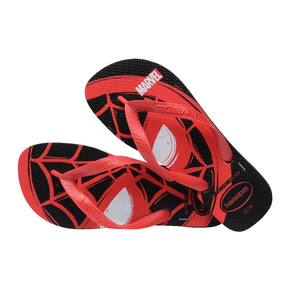 Os super-heróis da Marvel têm características inconfundíveis. A Havaianas Top Marvel Logomania tem solas estampadas justamente com essas representações icônicas: uma mão verde (Hulk), um capacete (Homem de Ferro) e uma máscara (Homem Aranha). Um chinelo poderoso!