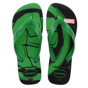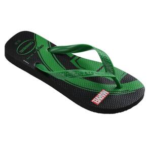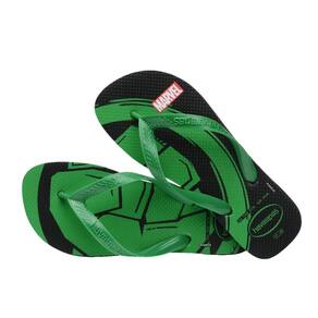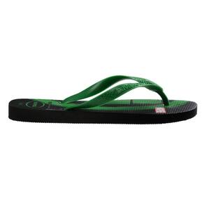 Os super-heróis da Marvel têm características inconfundíveis. A Havaianas Top Marvel Logomania tem solas estampadas justamente com essas representações icônicas: uma mão verde (Hulk), um capacete (Homem de Ferro) e uma máscara (Homem Aranha). Um chinelo poderoso!