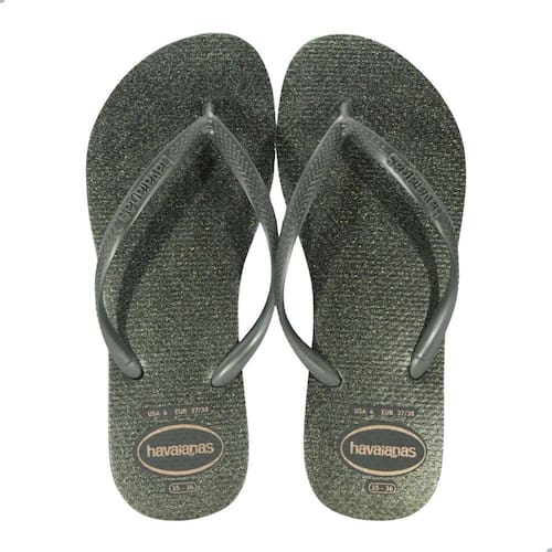 Quer um pouco mais de brilho? O chinelo feminino Havaianas Slim Gloss possui o amado formato slim, com tiras e solado mais finos, com um toque brilhante extra. Especial, o modelo conta com tiras metálicas e lindas aplicações de glitter no solado, entregando um efeito de brilho holográfico. A sola, feita 100% em borracha, é antiderrapante e não esquenta sob o sol. Disponível em três cores, descubra a versão que vai elevar o seu look do dia.