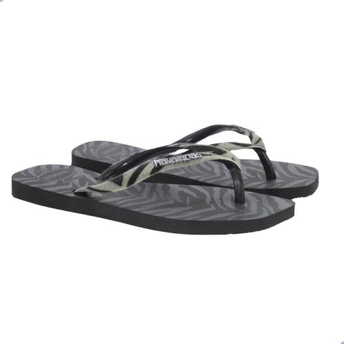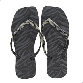 Descrição: Uma Havaianas Slim, sim, com tiras mais finas, mas toda diferentona: com a forma mais quadrada, animal print e tiras com o toque do veludo. É muito estilo!