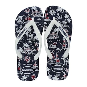 A Havaianas Top Nautical traz todo o charme do estilo náutico com releituras de vários listrados. Seja em azul, branco e vermelho ou em listras com um veleiro no mix, esse chinelo é uma ótima escolha para quem é do mar.