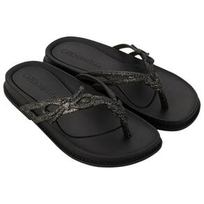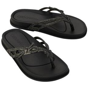 A Grendha Bela Rasteira, explora em seu visual essa tendência dos laços, em conjunto com o charme central do coração facetado, reforçando a delicadeza do produto Bela.