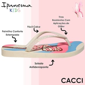 O chinelo infantil Ipanema Kids com estampa de frutas é a escolha perfeita para as crianças que amam se divertir com conforto e muito estilo. Feito com material leve, flexível e de alta qualidade, ele proporciona uma experiência única desde o primeiro passo, acompanhando os pequenos com segurança em todas as aventuras do dia. A palmilha estampada é extremamente confortável, macia ao toque e pensada para dar aquele aconchego que o pezinho infantil precisa, além de trazer um visual alegre e lúdico que encanta. As tiras são reforçadas, bem firmes e ganham um charme especial com aplicações de glitter, trazendo brilho e diversão ao look sem comprometer a resistência e durabilidade do calçado. Além disso, o fácil calce garante praticidade tanto para os pais quanto para as crianças, promovendo autonomia na hora de se vestir. O solado com tecnologia antiderrapante garante estabilidade em diferentes tipos de piso, tornando o chinelo ideal para uso em casa, no passeio, no parquinho ou até na escola. O design ergonômico oferece liberdade para os movimentos e leveza na pisada, fazendo desse modelo um verdadeiro aliado na rotina agitada e cheia de energia dos pequenos. Charmoso, seguro, funcional e confortável, é um chinelo que cuida do visual e da liberdade da criançada ao mesmo tempo.