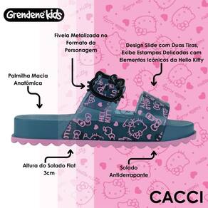 Outro destaque está na fivela metalizada em formato da Hello Kitty, que adiciona um charme especial ao calçado, tornando-o ainda mais exclusivo. Leve, resistente e fácil de limpar, essa sandália é perfeita para passeios, momentos de lazer e para compor looks alegres e descontraídos. Uma opção completa para quem busca um calçado confortável, durável e cheio de personalidade.