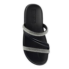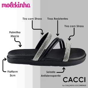 Esse chinelo é produzido em material sintético de alta qualidade e durabilidade, é macio e confortável para os pés. O modelo é slide e apresenta duas tiras com strass, deixando a sandália ainda mais bonita, além de uma tira dupla na diagonal. Seu solado é feito em borracha com frisos antiderrapantes.