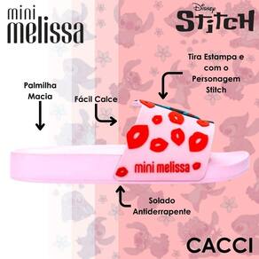 O Chinelo Slide Mini Melissa Flowing Stitch é a escolha perfeita para quem ama praticidade e charme. Com design inspirado no adorável personagem Stitch, este modelo traz uma tira larga estampada que adiciona um toque divertido e cheio de personalidade ao visual.