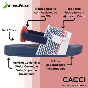 Os chinelos Slide Baby da marca Rider são versões infantis dos populares chinelos slide, projetados especificamente para os pés dos pequenos. Esses chinelos são conhecidos por sua praticidade, conforto e estilo. Os chinelos Slide Baby Rider são fabricados com materiais de alta qualidade e seguros para as crianças, como borracha macia e resistente. Eles são projetados para serem fáceis de calçar e tirar, proporcionando praticidade tanto para os pais quanto para as crianças. Apresentam uma tira larga na parte superior, que passa pela parte superior do pé e proporciona um ajuste seguro, com elástico traseiro solado e tira autocolante na gáspea. A tira geralmente possui o logotipo ou o nome da marca Rider, acrescentando um toque de estilo ao calçado.