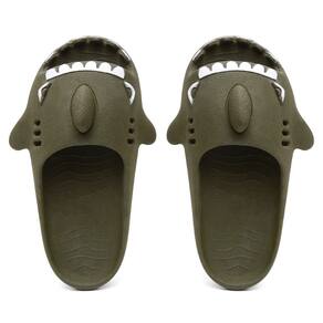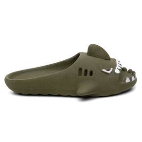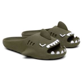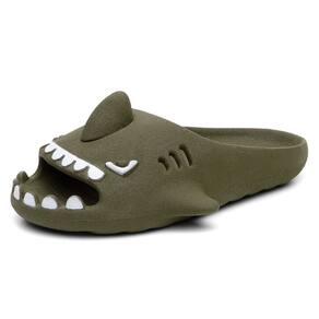 Chinelo Infantil Slide Tubarao Divertido Barbatana Calce Facil Microexpandido Conforto Resistente - Verde Musgo - 33