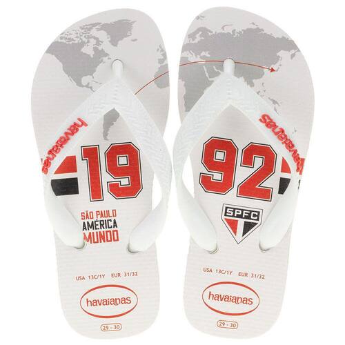O Chinelo Infantil Top Times São Paulo Havaianas é todo confeccionado em borracha vulcanizada com estampa personalizada, tiras macias e solado antiderrapante. É um modelo extremamente confortável e prático, criado para acompanhar a rotina agitada dos garotos. Aposte neste lançamento para presentear seu menino, ele vai amar essa novidade!