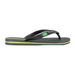 Chinelo de dedo para todos os momentos. A tira conta com aplique da bandeira do Brasil.
