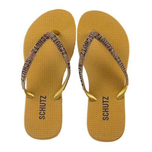 Prova de que até mesmo os modelos mais simples também podem carregar uma boa dose de estilo, essa flip flop ganha personalidade imediata com a aplicação do SCHUTZ logo e o toque glam do Triangle metalizado!