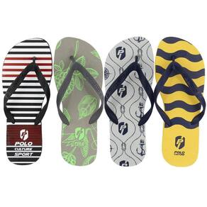 o Kit 4 Pares de Chinelo Polo Culture possui design despojado e versatilidade para combinar em diversas ocasiões. O modelo é confeccionado em Borracha flexível, gerando maior conforto durante o calçar. A combinação da palmilha macia e o solado em borracha, proporciona conforto e segurança no dia a dia. Modelo ideal para combinar em diversas ocasiões.