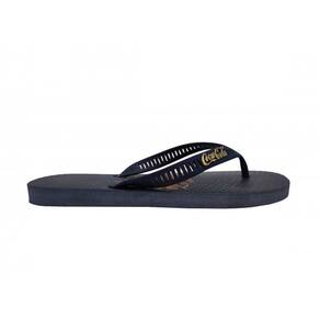 * Cabedal em sintético emborrachado macio;* Tira com adereço da marca metalizado localizado na lateral externa;* Palmilha com estampa;* Bico redondo;* Solado emborrachado que garante segurança e estabilidade ao caminhar;* Medida do solado: 1,5cm.