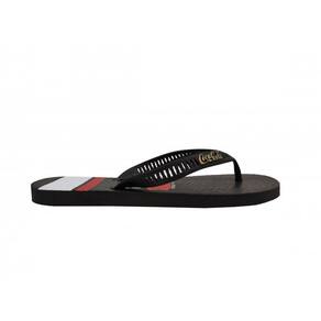 * Cabedal em sintético emborrachado macio;* Tira com adereço da marca metalizado localizado na lateral externa;* Palmilha com estampa;* Bico redondo;* Solado emborrachado que garante segurança e estabilidade ao caminhar;* Medida do solado: 1,5cm.