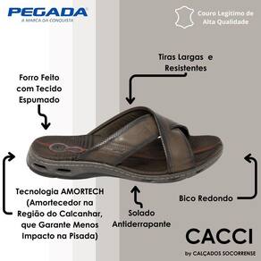 Confeccionado em couro de alta qualidade, este chinelo proporciona durabilidade e uma sensação luxuosa. A sua estrutura leve permite uma mobilidade fácil, tornando-o uma escolha ideal para o dia a dia, além de ser uma opção confortável para momentos de lazer.