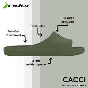 Sobre a marca: Fundada em 1986 pela Grendene, a Rider rapidamente conquistou as praias, piscinas e ruas do Brasil e países ao redor do mundo, graças a seus produtos com design inovador que carregam o DNA jovem e cultural, cheio de personalidade.