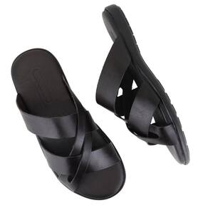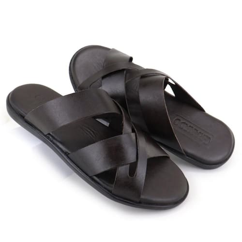 Chinelo Masculino Couro Com Tiras Confortável Resistente - 43 - Marrom Chocolate