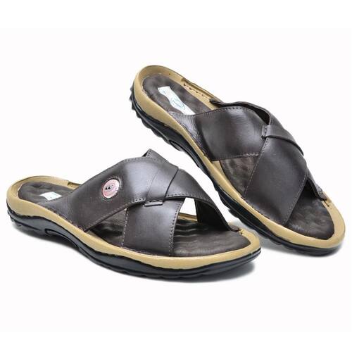 Chinelo Masculino Couro Confortável Dia a Dia Moderno - 43 - Marrom