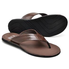 Chinelo Masculino Couro De Dedo Tiras Largas Dia a Dia - 41 - Marrom Chocolate