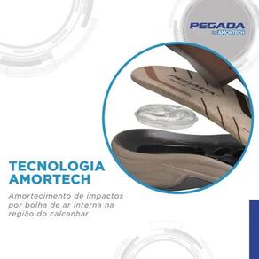 Tecnologia AMORTECH com Bolha de Ar no Solado: Reduz o impacto da pisada, promovendo um caminhar leve e confortável.