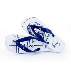 Chinelo Masculino Macio Borracha Estampado Tiras Largas - 43-44 - Branco