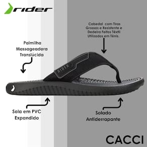 O Rider Infinity Max é um novo integrante da família Infinity Max, agora na versão em dedo! Com uma sola e palmilha massageadora translúcida, que confere modernidade e diferenciação. Além disso, o modelo conta com cabedal e dedeira têxtil utilizados em tênis. Um produto moderno e esportivo, que garante conforto e estilo!