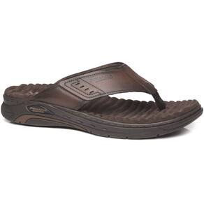 Esse chinelo em couro marrom é muito confortável. Nele a Tecnologia AMORTECH está presente tanto na palmilha, que é macia e possui o BLUE MEMORY FOAM, um amortecedor que se adapta aos contornos dos pés e volta ao formato padrão, quanto no solado, que é leve e flexível e tem a Tecnologia AMORTECH através do design da sola, com tubos que absorvem o impacto na região do calcanhar. Ambos garantem juntos muito conforto e menos impactos na pisada.