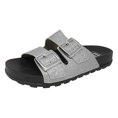 As tiras grossas são macias e resistentes, com aplicação de glitter para um toque glamouroso. Além disso, o ajuste em fivela permite um encaixe ideal para maior firmeza e segurança.