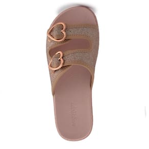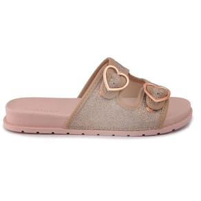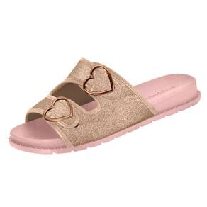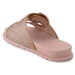 Rasteirinha infantil, confeccionada em material sintético com brilho , tiras no cabedal com Fechamento ajustável e prático.