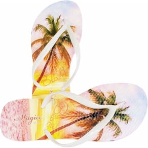 Para complementar seu visual com charme e estilo o chinelo Magicc possui estampa fashion e inspirada nas tendências de moda; pensando em seus momentos de lazer, para os dias de piscina, ou banho de mar. São feitos em PVC Microexpandido, o que proporciona conforto e durabilidade. As estampas combinam com as bolsas e necessaires. São resistentes ao tempo e dificilmente desbotam. Design da sola inspirado nas calçadas de Copacabana.