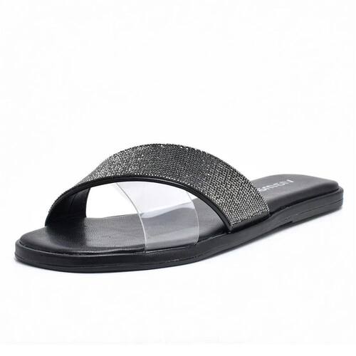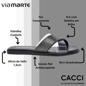 Experimente o conforto e a sofisticação impecável da Rasteira Via Marte, com seu solado flat e bico quadrado, proporcionando um equilíbrio perfeito entre moda e bem-estar. As deslumbrantes tiras que envolvem seus pés apresentam um detalhe com brilho incomparável, garantindo que você esteja sempre deslumbrante. Calçado moderno e versátil que você precisa para elevar o estilo de todos os seus looks.