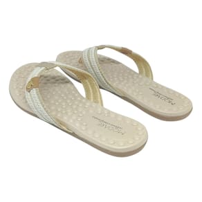 Design sofisticado: tira única de dedo resistente com detalhes de pedrarias e tranças metalizadas que acrescentam um toque de charme ao visual.