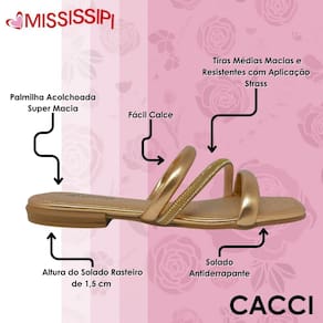 Garanta já o seu chinelo rasteiro metalizado strass da Mississipi e aproveite cada momento com conforto e estilo.