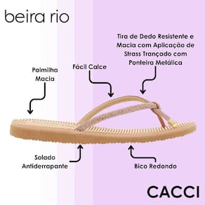 O chinelo feminino de dedo da Beira Rio com strass trançado é a união perfeita entre estilo e praticidade para os dias mais quentes. Com design moderno e detalhes que encantam, ele conta com tiras resistentes e macias adornadas por strass delicadamente entrelaçados e ponteiras metalizadas, que elevam o visual com um brilho sutil e sofisticado.