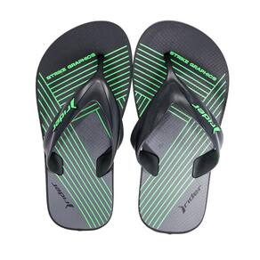 Chinelo masculino modelo slide, confeccionado em PVC. Tiras de dedo com acabamento em textura com logo em alto relevo, solado estampado em listras, palmilha com alta absorção de impacto e umidade, solado flexível, emborrachado com frisos antiderrapante para garantir maior segurança e conforto ao caminhar.