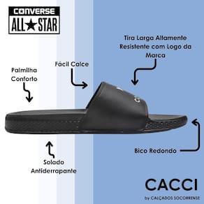 Aposte no conforto e estilo do Chinelo Slide Converse! Perfeito para o dia a dia, ele oferece praticidade e segurança com um toque de modernidade. Adquira já o seu e caminhe com muito mais conforto e atitude!