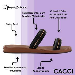Desenvolvido com material de alta qualidade, conta com tiras resistentes que trazem detalhes sofisticados, proporcionando charme extra ao modelo. A palmilha anatômica texturizada foi pensada para entregar maciez a cada passo, tornando a experiência de uso muito mais agradável. Além disso, o solado antiderrapante garante firmeza e segurança ao caminhar, seja em ambientes internos ou externos, proporcionando tranquilidade em todas as ocasiões.