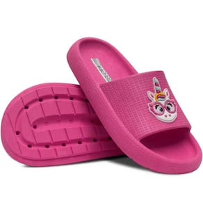 Confeccionado em material emborrachado, super confortável, macio e resistente que proporciona o encaixe perfeito dos pés. Possui formato anatômico e solado antiderrapante, dando maior aderência em cada passo. Além do detalhe unicórnio, que deixa o modelinho bem fofo e despojado!