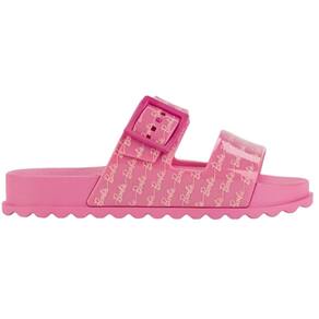 Nosso clássico modelo inspirado no Birken vem no lançamento da Barbie, com uma linda serigrafia, trabalhada dentro da tendência da logomania. Traz também uma fivela contrastante como adorno nas tiras com possibilidade de ajuste na tira superior.