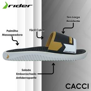 A gáspea em coverline com forro garante ainda mais comodidade no uso, recebendo enfeite de plastisol com o logo de Rider e detalhamentos de costuras e blocos de cores. Já a sola, em PVC expandido e com pintura na lateral traz formas levemente robustas que agregam ainda mais valor ao produto.