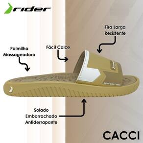 A gáspea em coverline com forro garante ainda mais comodidade no uso, recebendo enfeite de plastisol com o logo de Rider e detalhamentos de costuras e blocos de cores. Já a sola, em PVC expandido e com pintura na lateral traz formas levemente robustas que agregam ainda mais valor ao produto.