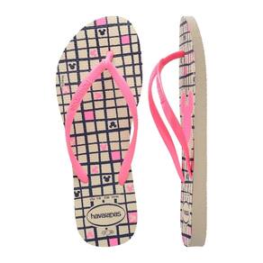 O Chinelo Havaianas Slim Disney é um modelo feminino que combina a delicadeza das tiras finas (característica da linha Slim) com a magia dos personagens Disney. A cor Bege Palha (ou um tom similar, como Bege Claro ou Bege Areia) no solado, juntamente com estampas dos personagens Disney, confere um visual charmoso, leve e descontraído. O design é ideal para quem busca conforto e um toque divertido no dia a dia.
